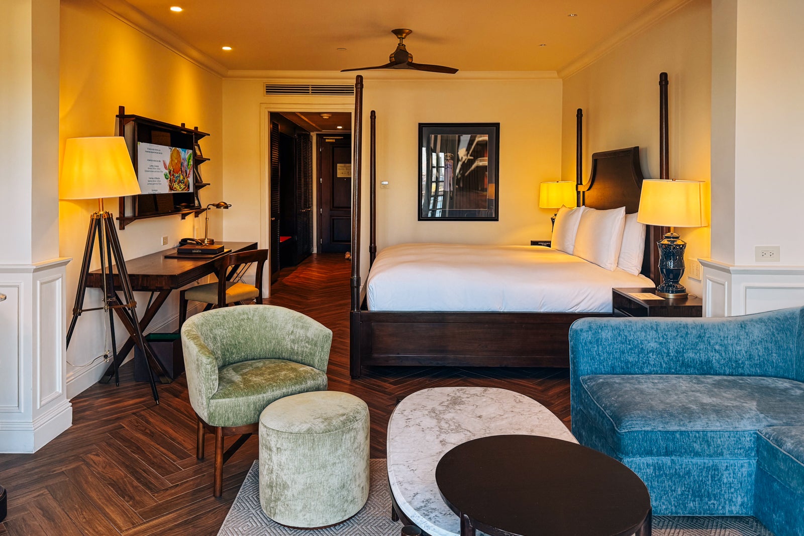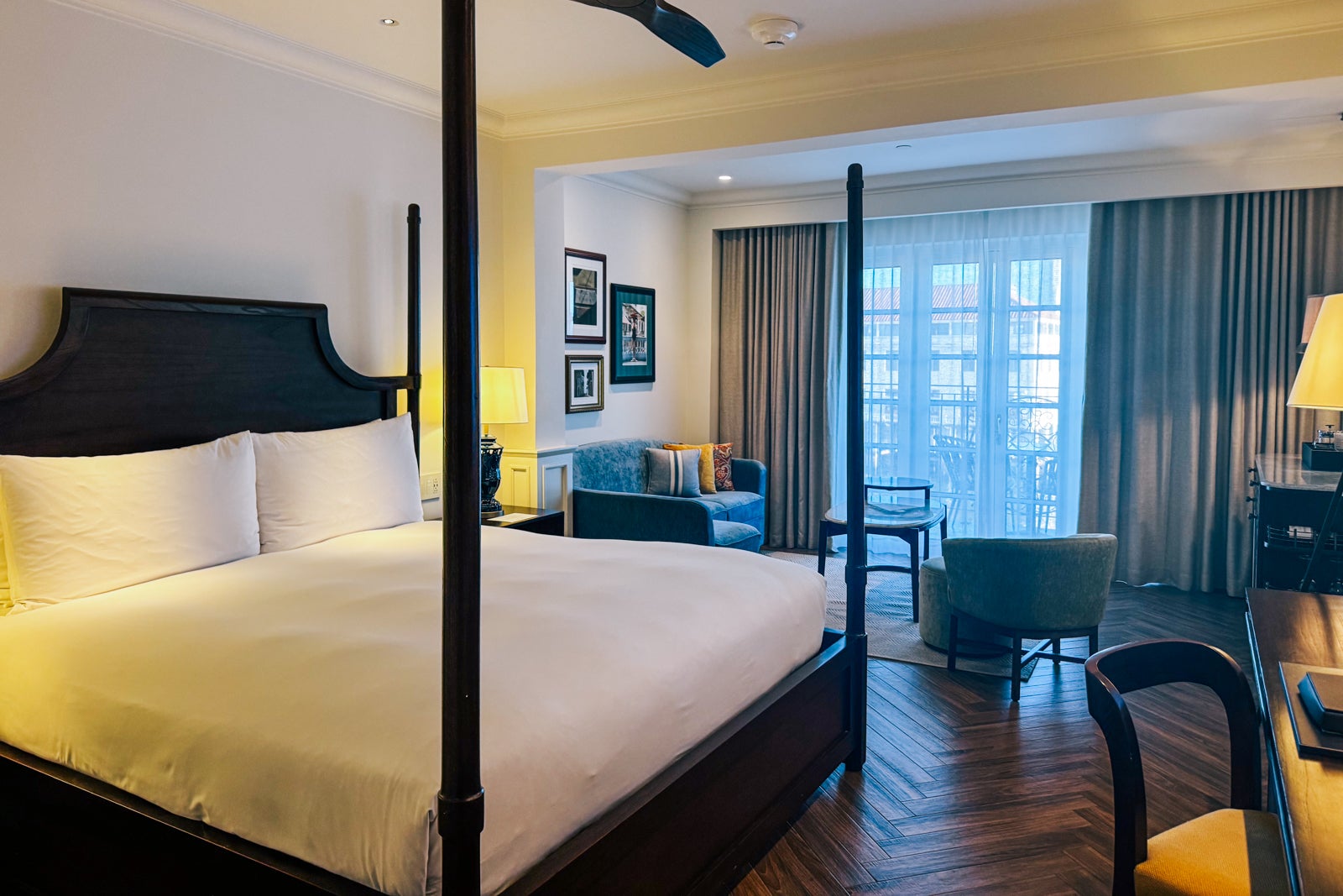 My room's sleek mahogany four-poster king bed, dressed with crisp white linens, was deliciously cozy, and I especially enjoyed the spacious room's chic seating area, which featured a jewel-toned, velvet-upholstered armchair and sofa. Beyond this was the best part: two picturesque French doors leading to a balcony, replete with ornate ironwork and a table just perfect for enjoying the in-room French press Panamanian coffee each morning.