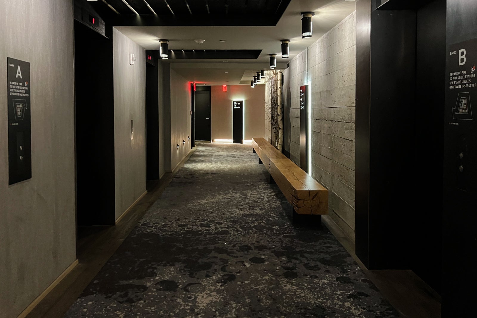 The 1 Hotel Brooklyn Bridge's 195 rooms and suites are accessed via elevators that take you into winding hallways with modern, moody lighting and a mix of industrial and natural materials.