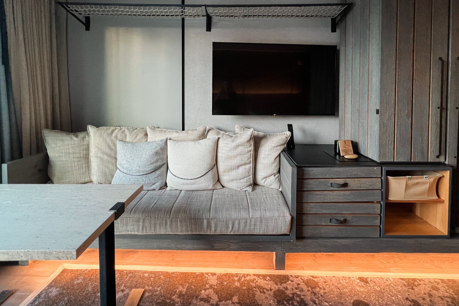 The bathroom situation was pretty interesting for a family trip, as the half-wall that separated it from the sleeping area was a little bit of a challenge with a teenager until they truly trusted the wall was doing its privacy job despite its not going all the way to the ceiling. But that detail aside, the bathroom worked out great and the high-end Bamford products were a much-appreciated touch.