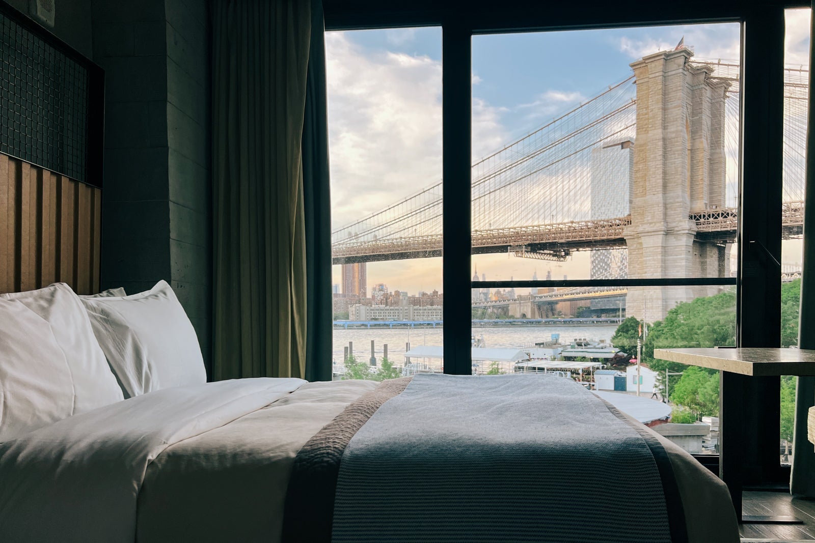 Once inside the room, it's all about the natural light. In our case, the enormous floor-to-ceiling windows revealed a stunning Brooklyn Bridge view.
