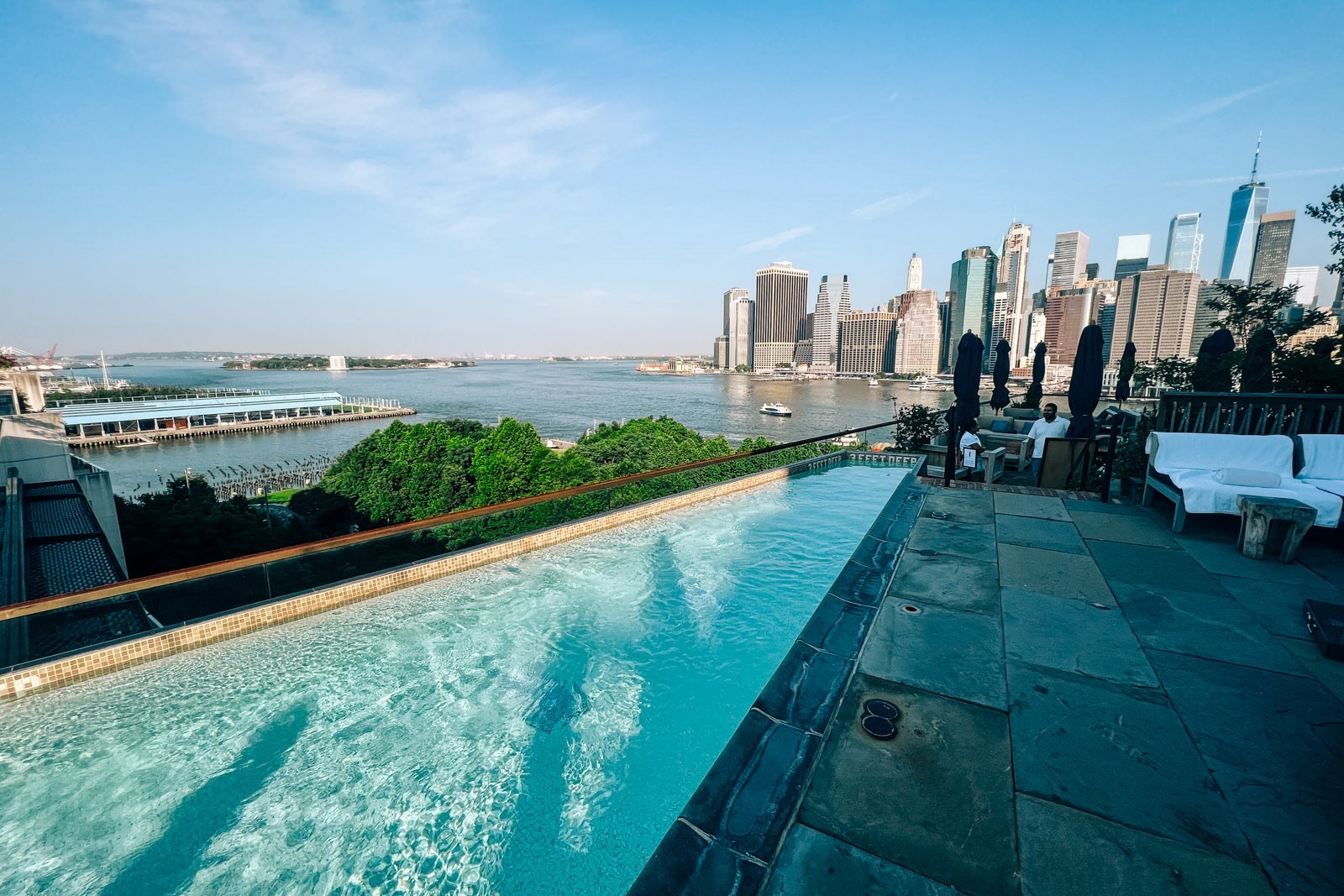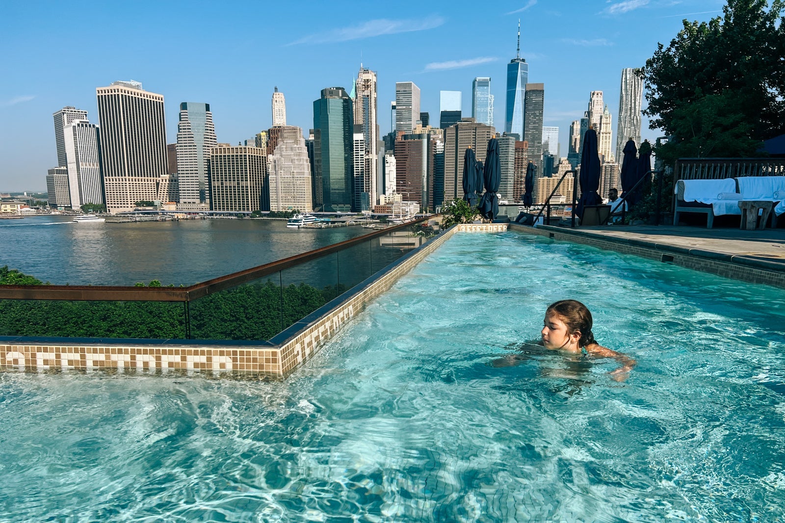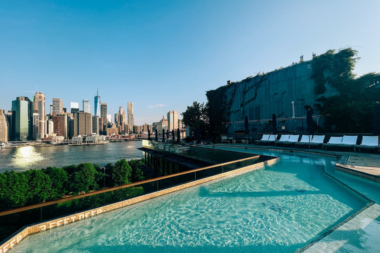 - The rooftop pool at the 1 Hotel Brooklyn Bridge is breathtaking on its own — but it's especially impressive as you turn around and take in the views of Manhattan right across the river.