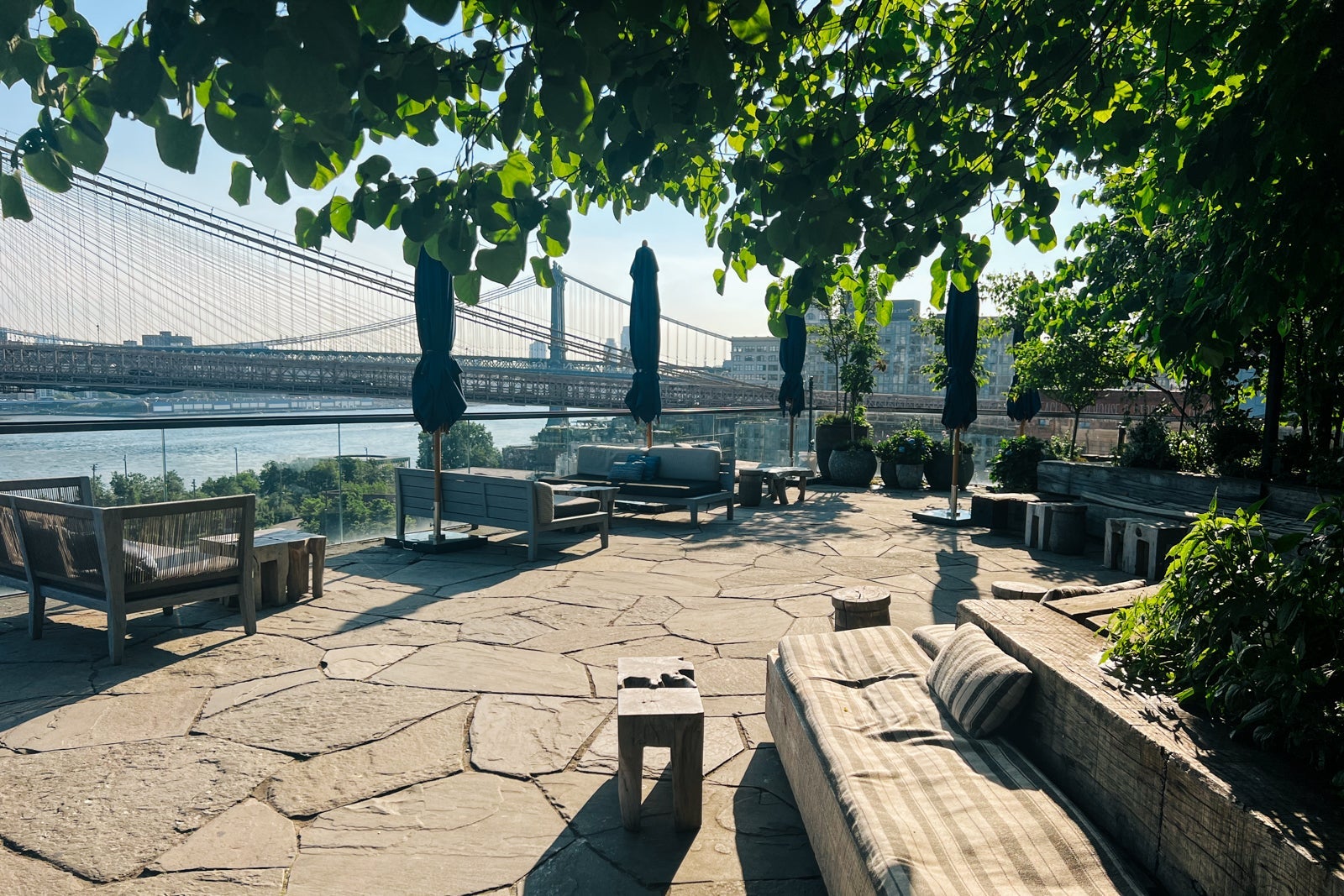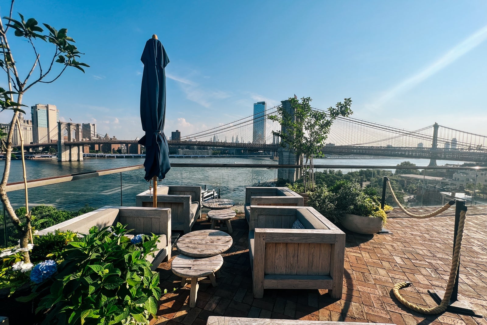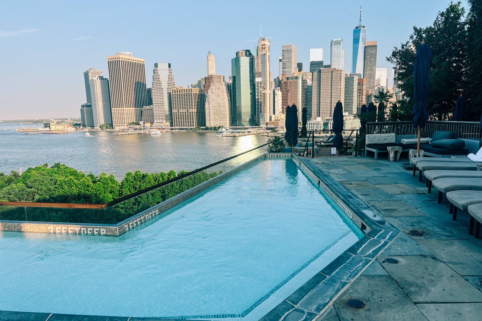 - The rooftop pool at the 1 Hotel Brooklyn Bridge is breathtaking on its own — but it's especially impressive as you turn around and take in the views of Manhattan right across the river.
