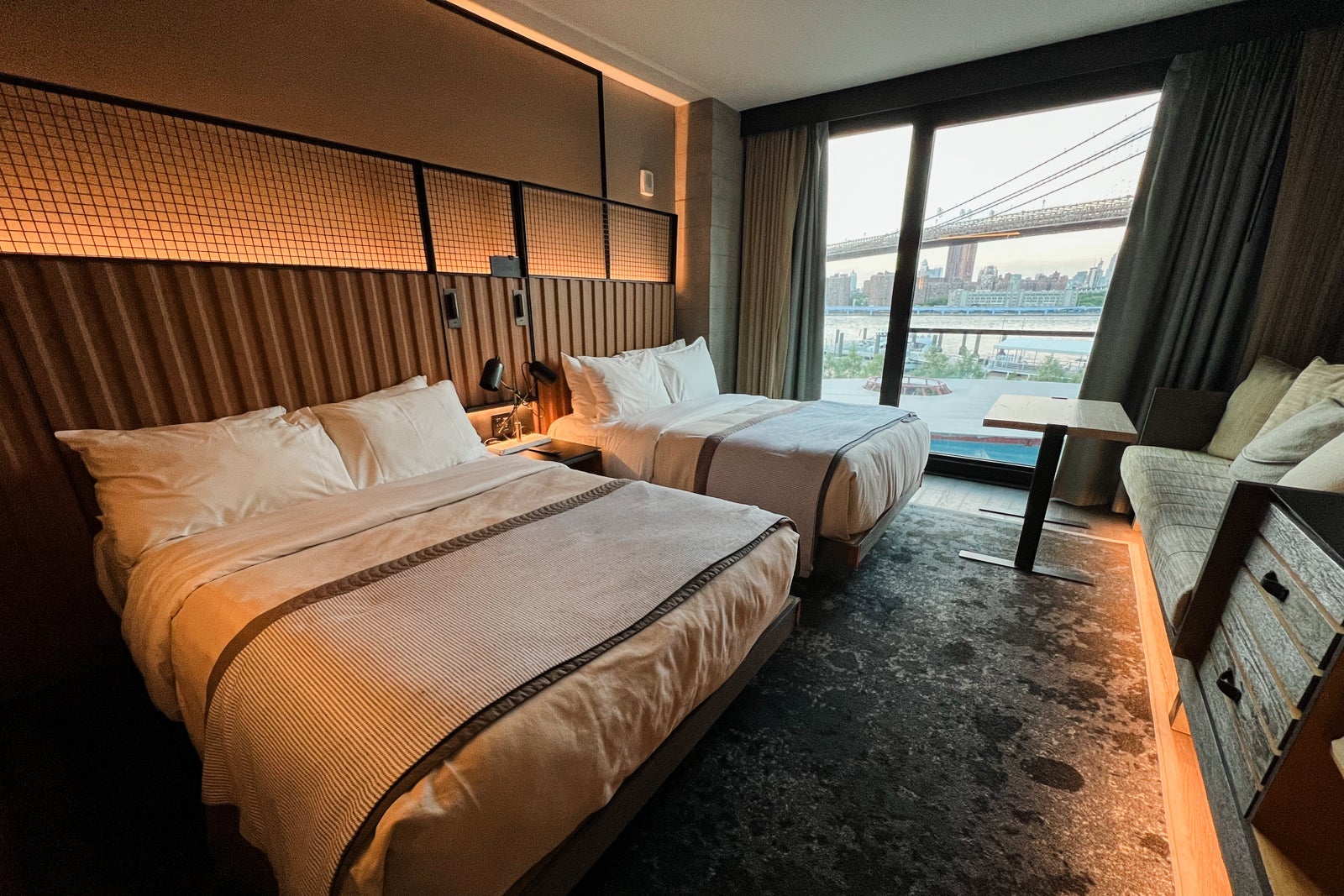 Once inside the room, it's all about the natural light. In our case, the enormous floor-to-ceiling windows revealed a stunning Brooklyn Bridge view.