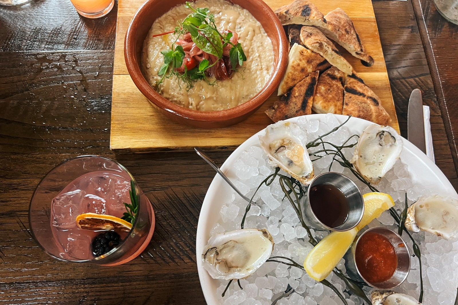 We tried the East Coast oysters ($24 per half-dozen), the beets and baba dish ($16) that came with some delicious local Angel's Bakery pita, and Nunna's gnocchi with pesto and toasted pine nuts ($24), all of which were eaten clean down to the plate. Reservations are a good idea for dinner as the restaurant was hopping on the Friday night that we went.