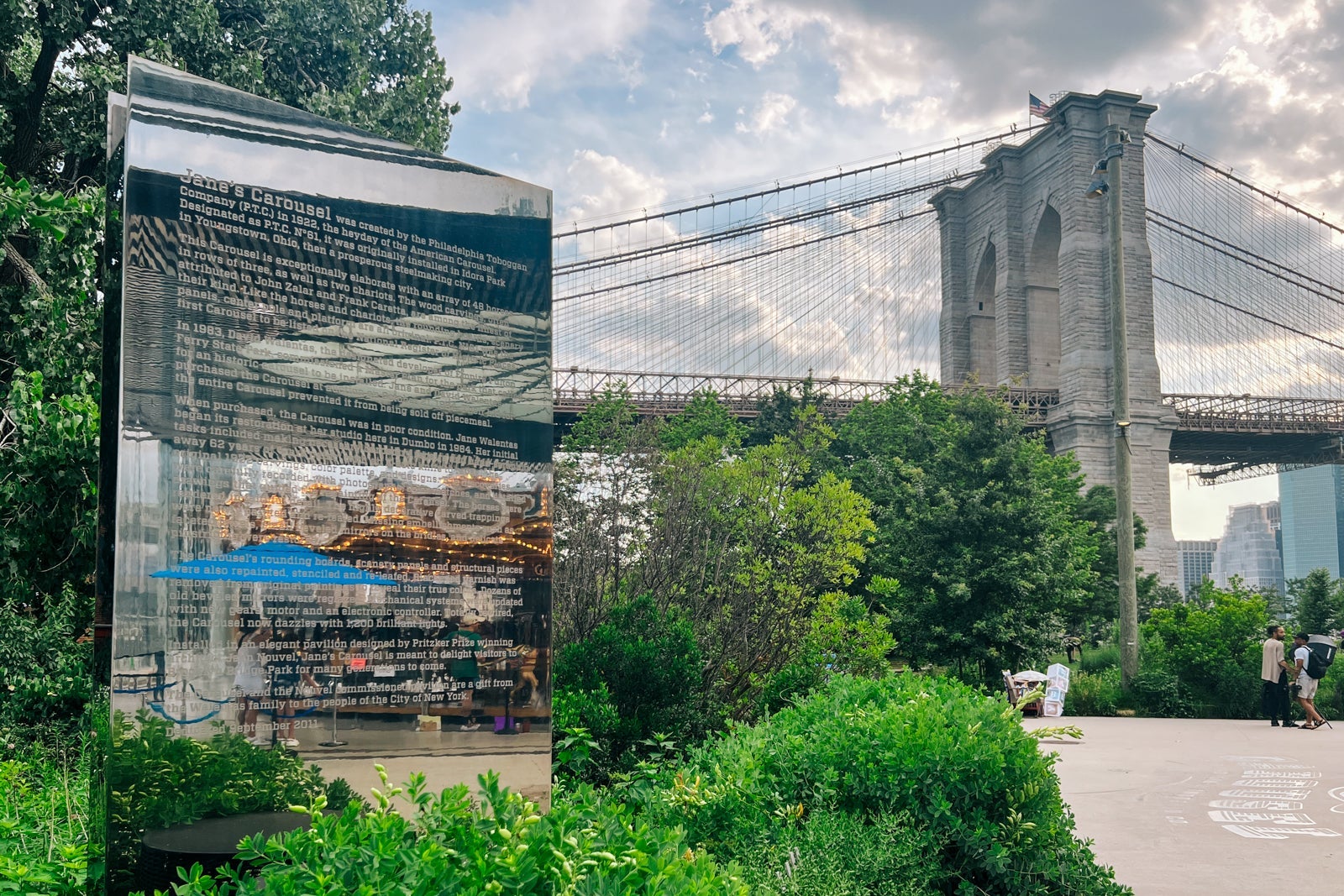 If you're traveling to the area with kids like I was, a stroll over to Jane's Carousel is a must. It's over 100 years old, has 48 individually carved horses and costs just $3 per ride.