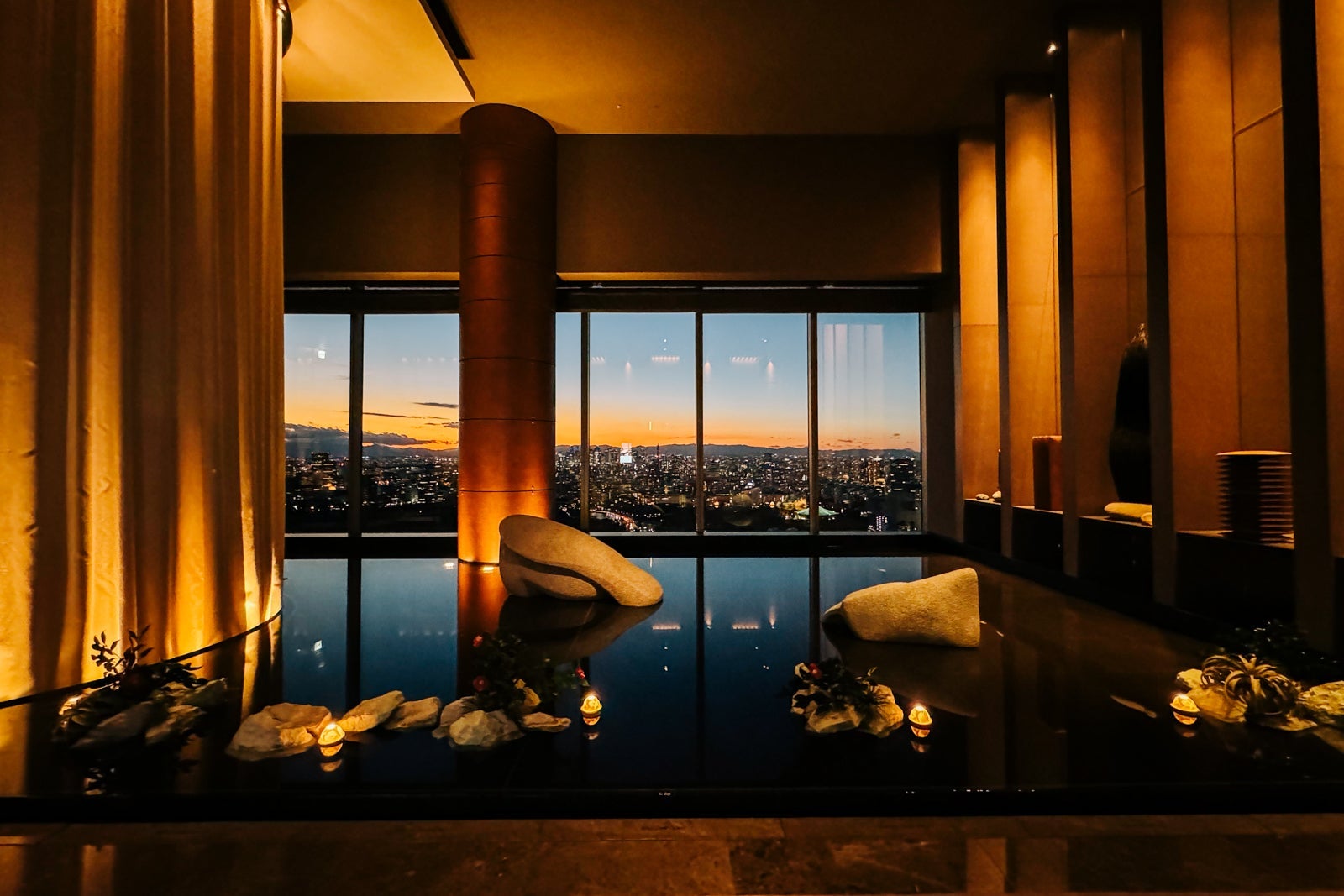 After, head to the locker room for a rinse in one of the shower suites, then don your bathing suit and grab one of the cushioned daybeds that surround the black-tiled pool with its reflective metal bottom as you contemplate the Tokyo skyline some more.