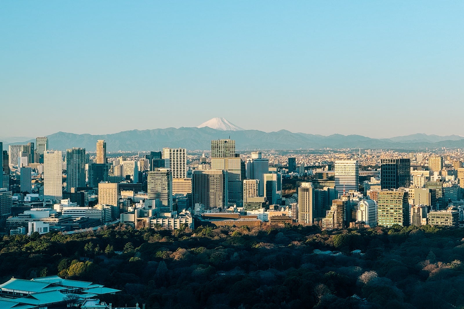 My Four Seasons Suite — Imperial Garden View had, true to its name, an uninterrupted panorama to the west of the Imperial Palace grounds and, on the winter mornings of my stay, a crystal-clear vista all the way to a snow-cowled Mount Fuji.