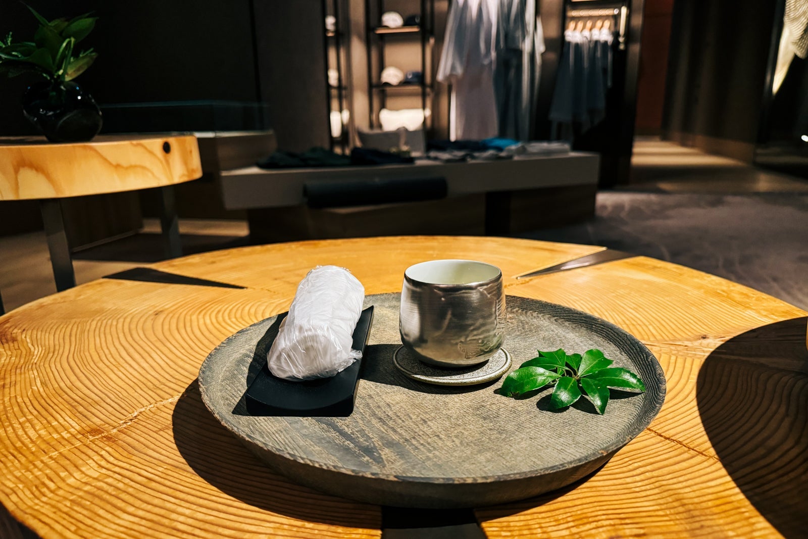 Guests enter through a hushed, dim corridor where various products ranging from teas and skincare products to jewelry, workout clothes and pajamas are on display.