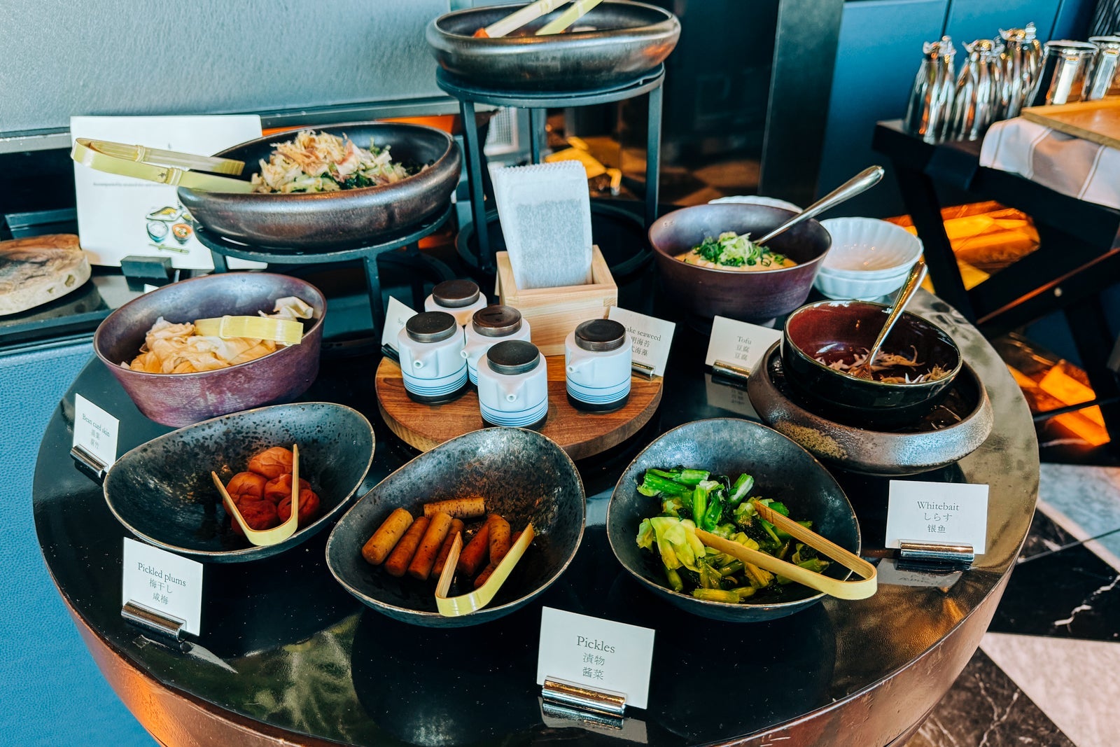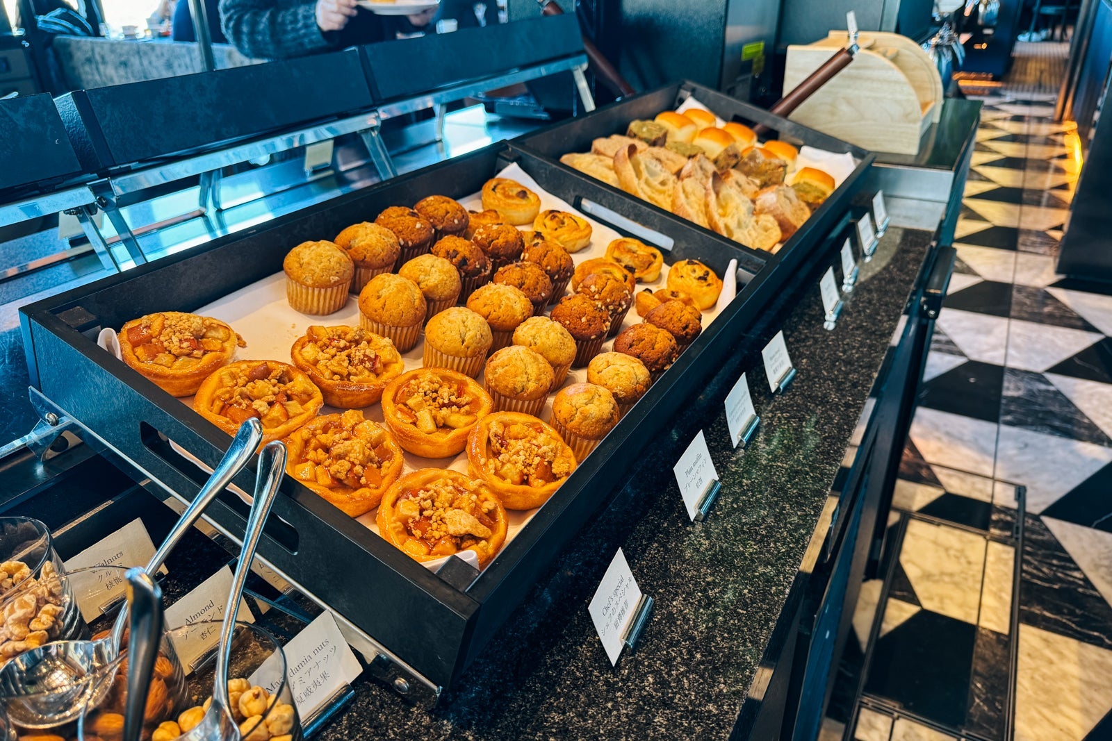 Pigneto, the hotel's all-day restaurant, is located just past the Lounge and serves a lavish breakfast spread before transitioning into an Italian eatery for lunch and dinner. Continental breakfast ($36 per person) includes a selection of cold items from the buffet, including fresh fruit, daily changing pastries like a seeded croissant stuffed with sweet red bean paste and various pickled vegetables over steamed rice.