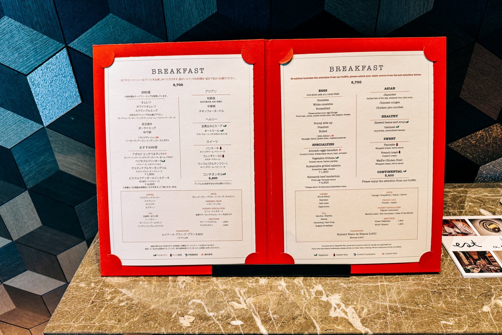 The full breakfast ($45 per person), meanwhile, includes both cold and hot buffet options as well as some a la carte dishes like avocado eggs Benedict or fresh grilled fish of the day with steamed rice and miso soup.