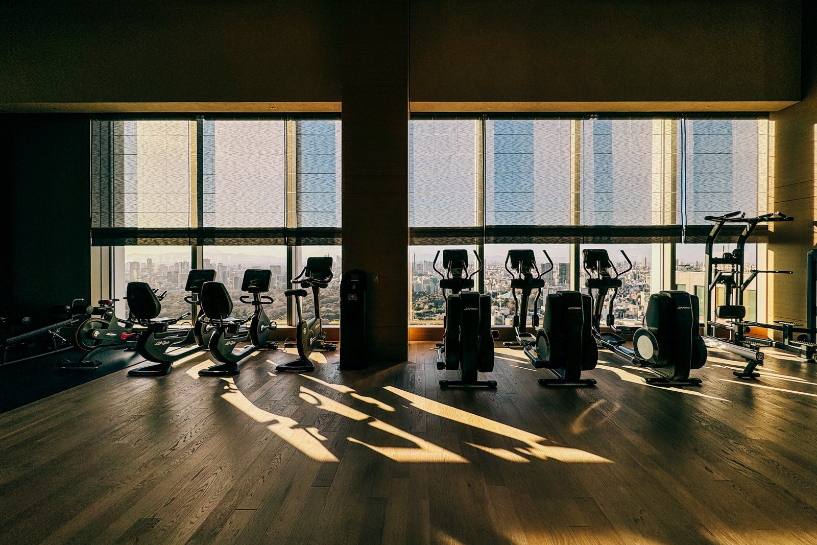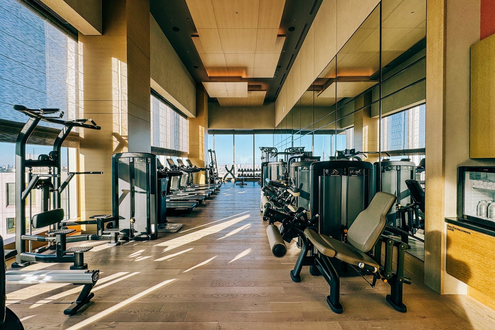 Across from reception on the 39th floor, the Four Seasons Hotel Tokyo at Otemachi has a wellness center with a spa, gym and kitted-out locker rooms.