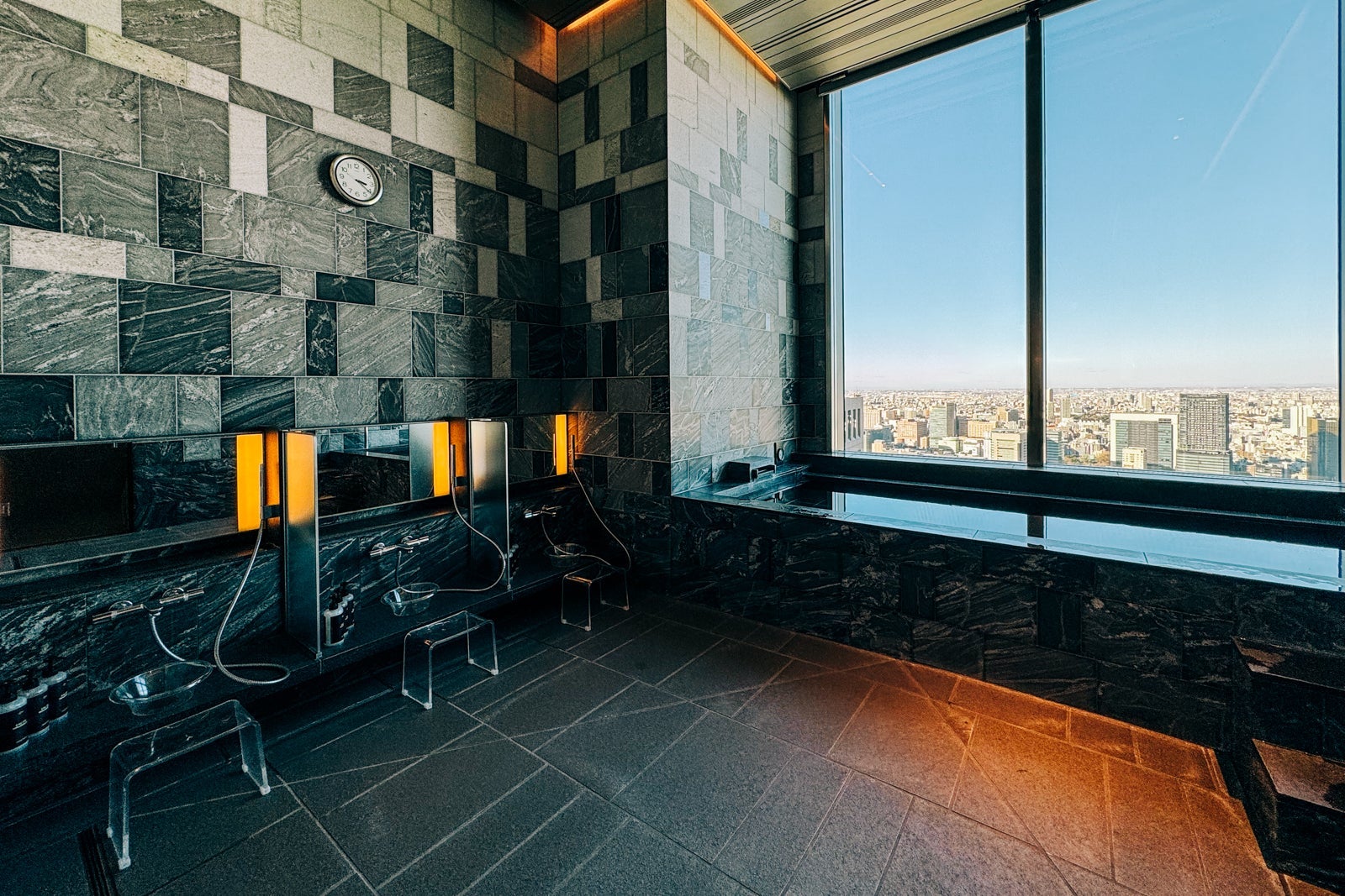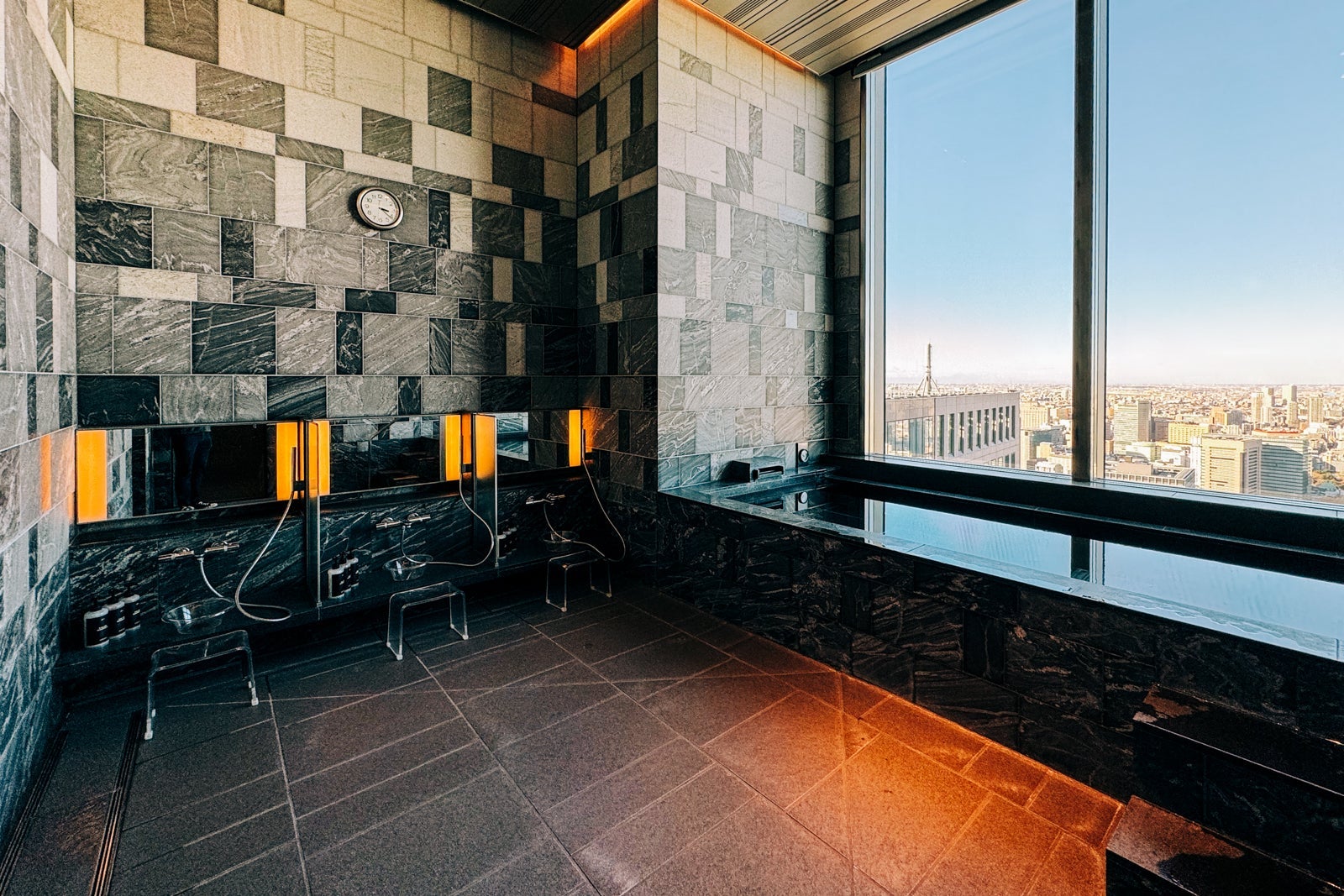 Back in the locker room, use one of the traditional open seated showers to scrub yourself as clean as possible before wallowing in the hot waters of the window-side ofuro, or traditional soaking bath.