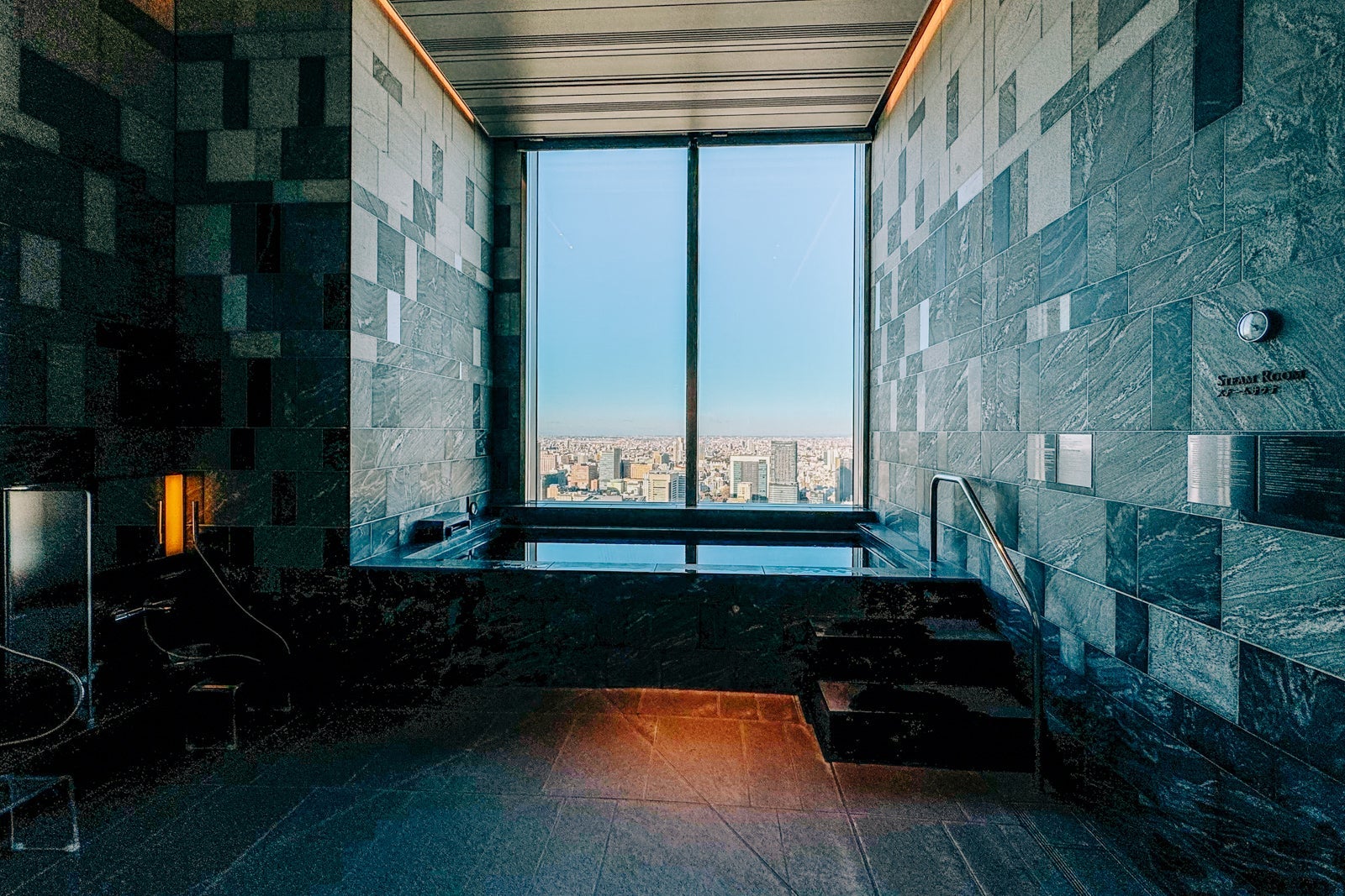 The public spaces, restaurants and bars on the 39th floor are all accessible for wheelchair users, with no stairs involved. However, getting into the pool or hot tub requires the use of stairs, and there is no chairlift. The same is true of the ofuros in the locker rooms.