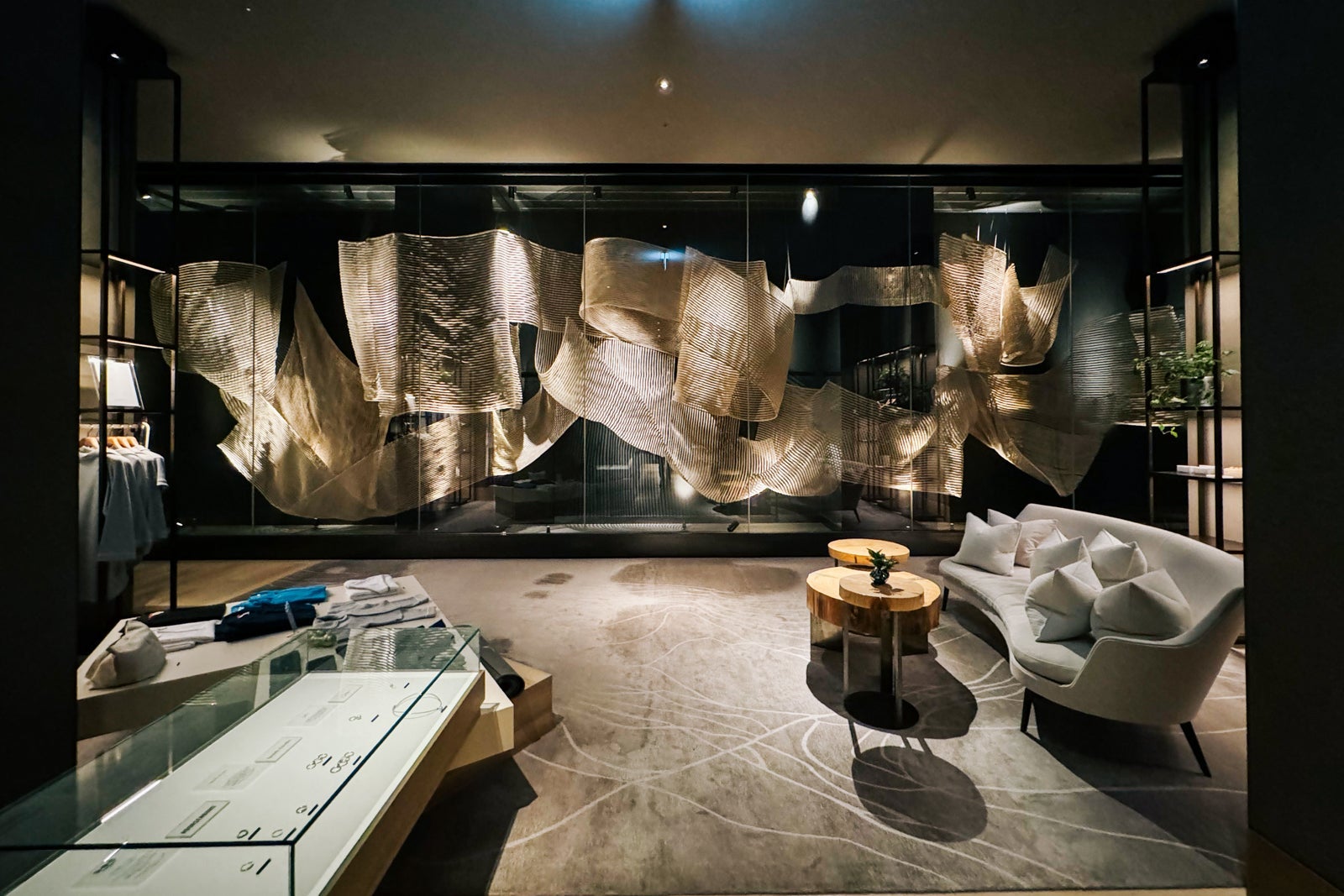Guests enter through a hushed, dim corridor where various products ranging from teas and skincare products to jewelry, workout clothes and pajamas are on display.