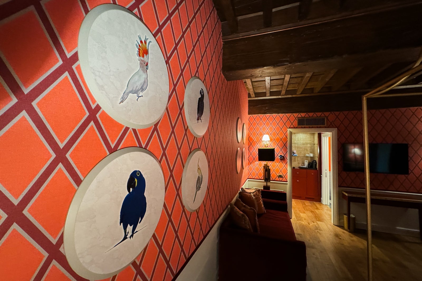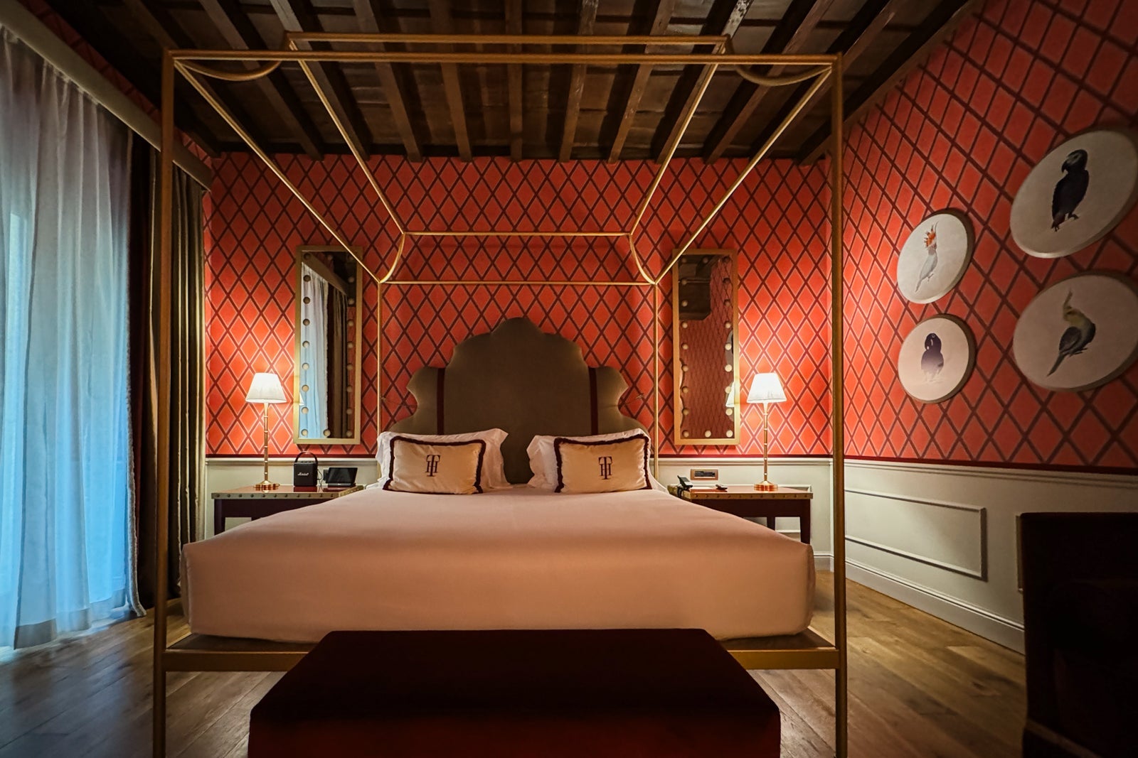 Il Tornabuoni has more than a dozen room and suite types. Our group ended up staying in three different rooms. I booked the King Bed Premium (pictured below), a spacious 300-square-foot room with wood accents, rich red wallpaper and a smattering of avian-inspired art (I noticed that animal art, beyond birds, was a running theme at the hotel).