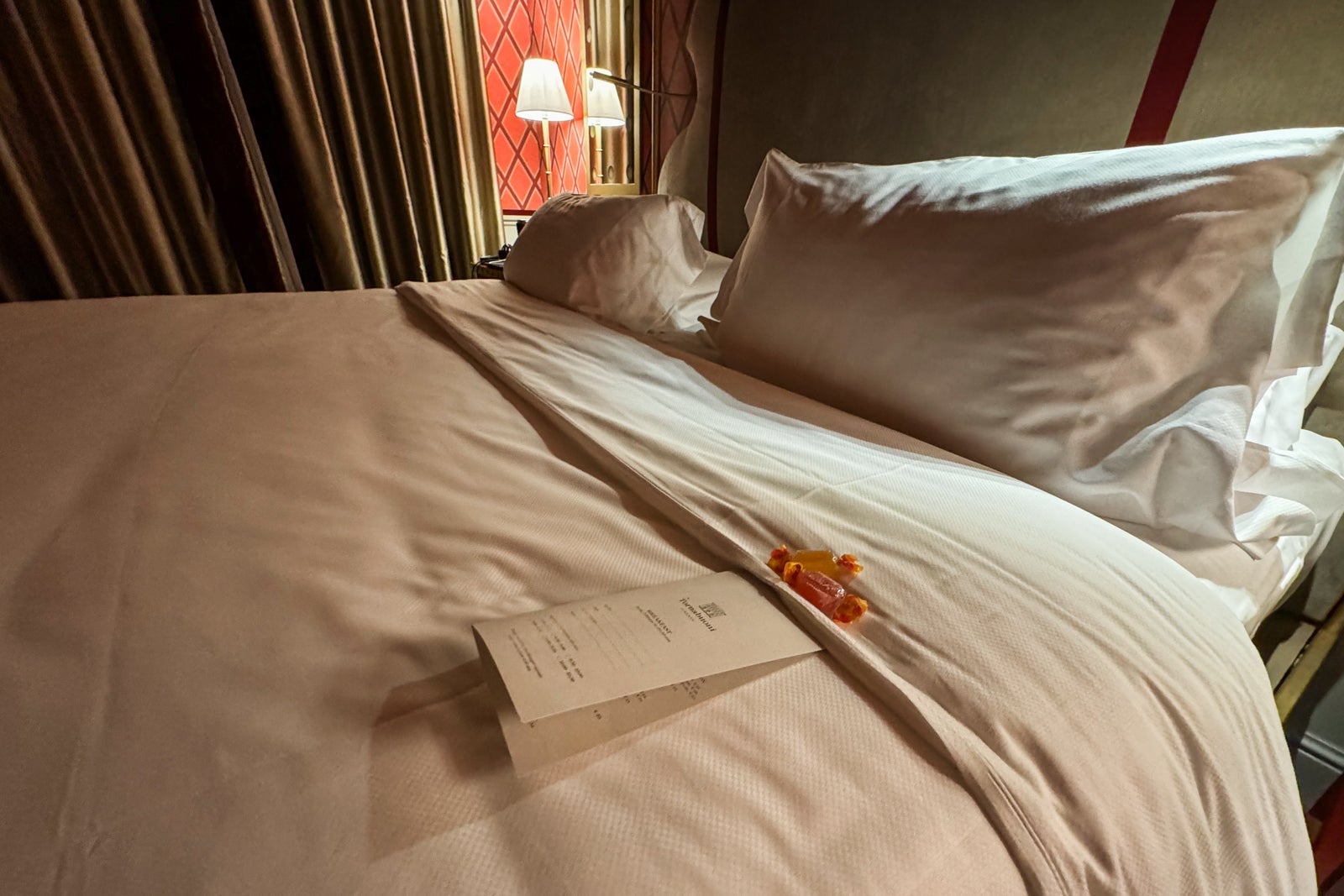 Turndown service was consistent. Canned water and candies were placed in the room, along with slippers left at the bedside. I also have to compliment the hotel for the excellent air conditioning in our room, which stood up to the test of my very American cold-room standards.