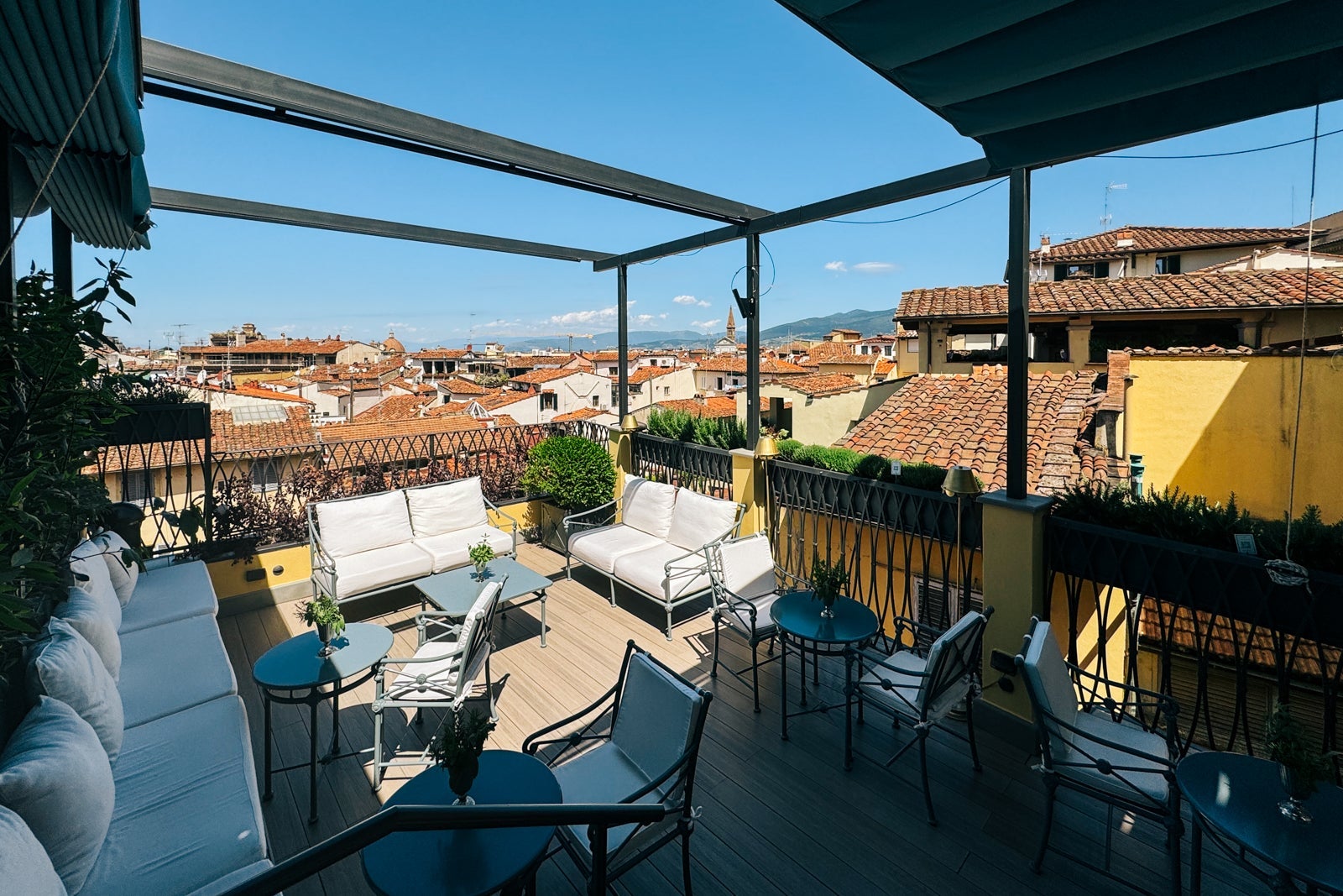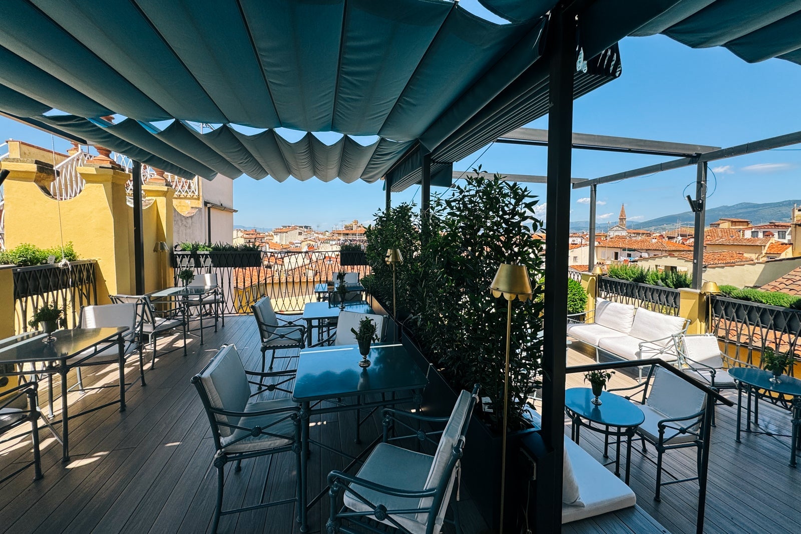 While there's certainly no shortage of amazing food and drink in Florence, I do appreciate nice options at my home base as well. Our first stop was the property's Butterfly Terrace, a rooftop cocktail bar. The terrace is open from 5 p.m. to 11 p.m., except on Mondays. In Florence, I always think rooftop bars are a great way to take in the view — and it was nice to have one in our own building.