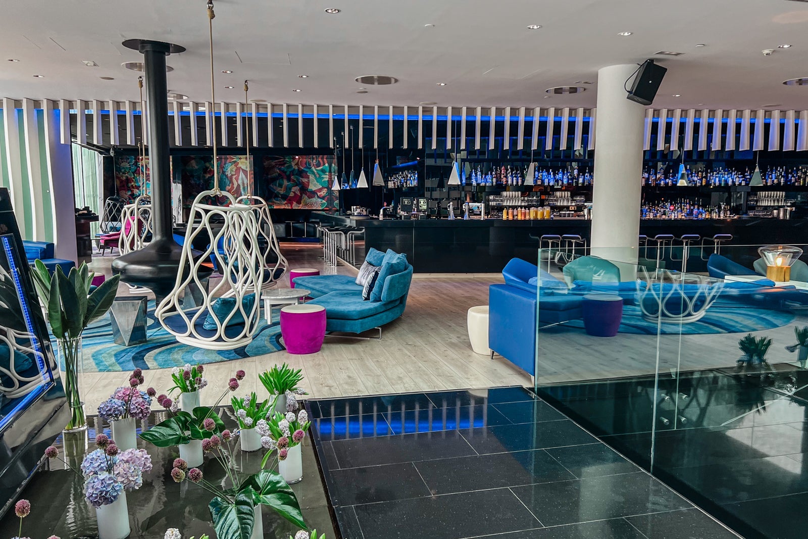 Check-in was easy and quick. There are six check-in desks, so though I arrived mid-afternoon — a busy time — my wait was maybe two minutes, maximum. If you need to wait in the lobby, there are fun seating options, including some hanging chairs.