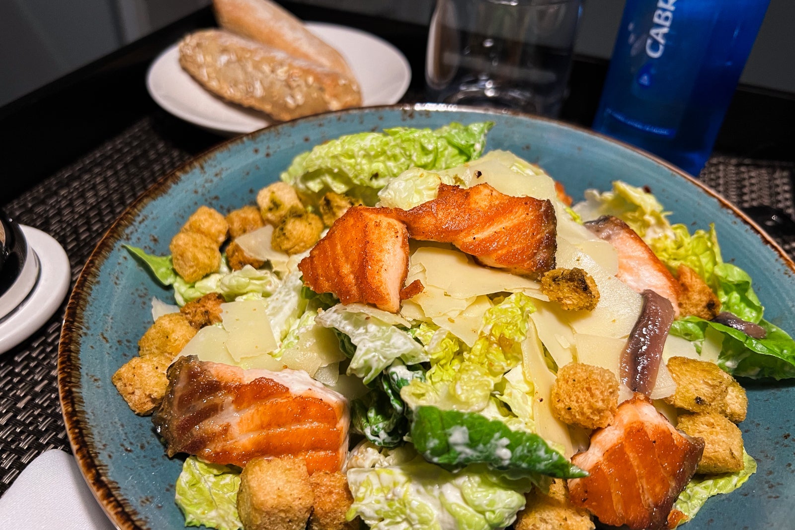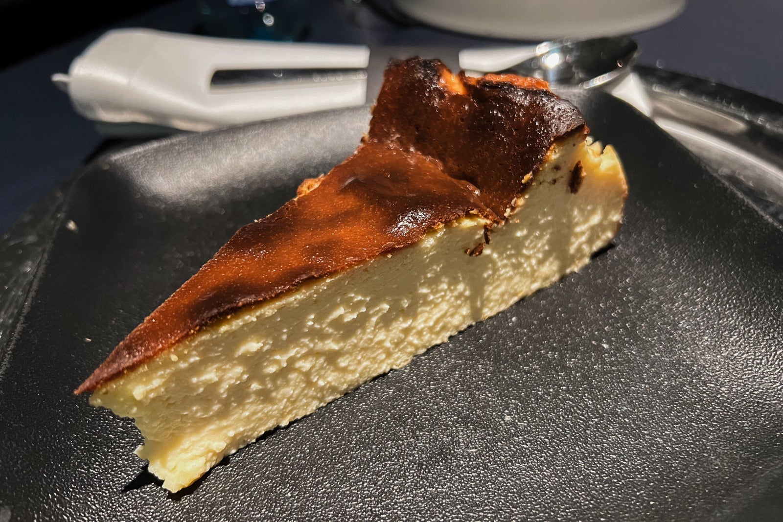 I ordered a salmon Caesar salad. The salmon came warm, the anchovies were canned but still good and there was an appropriate amount of dressing mixed in. Overall, a great salad. The basque cheesecake was a late-night decision (as one does). It was sublime and less sweet than its American counterpart; it was missing a crust and was overall lighter and fluffier than I was accustomed to.