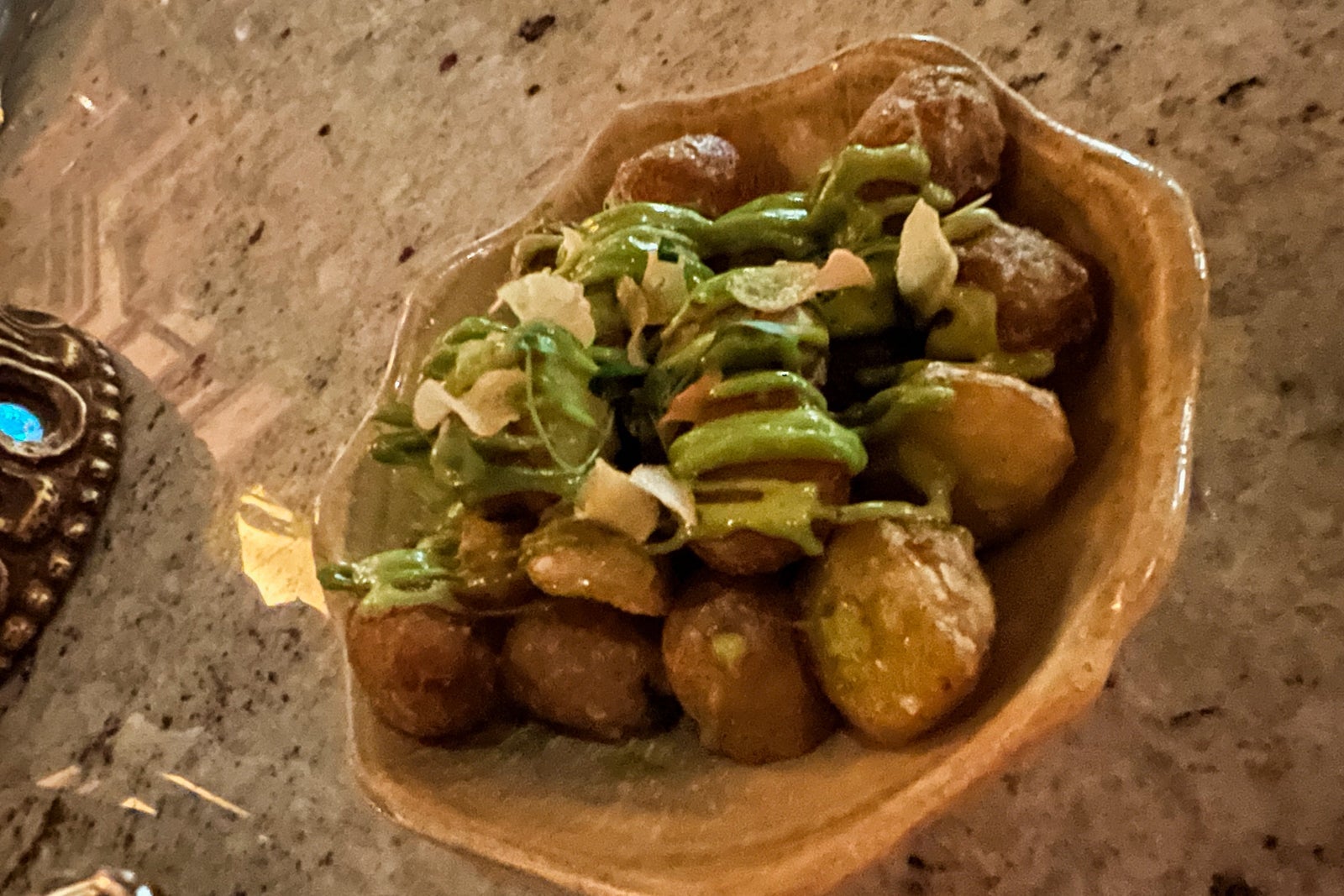 For my main course, I ordered the Iberian pork with homemade guava barbecue sauce and a side of baby potatoes. The potatoes were perfectly crispy on the outside and soft on the inside. The green sauce that came drizzled on them paired perfectly.