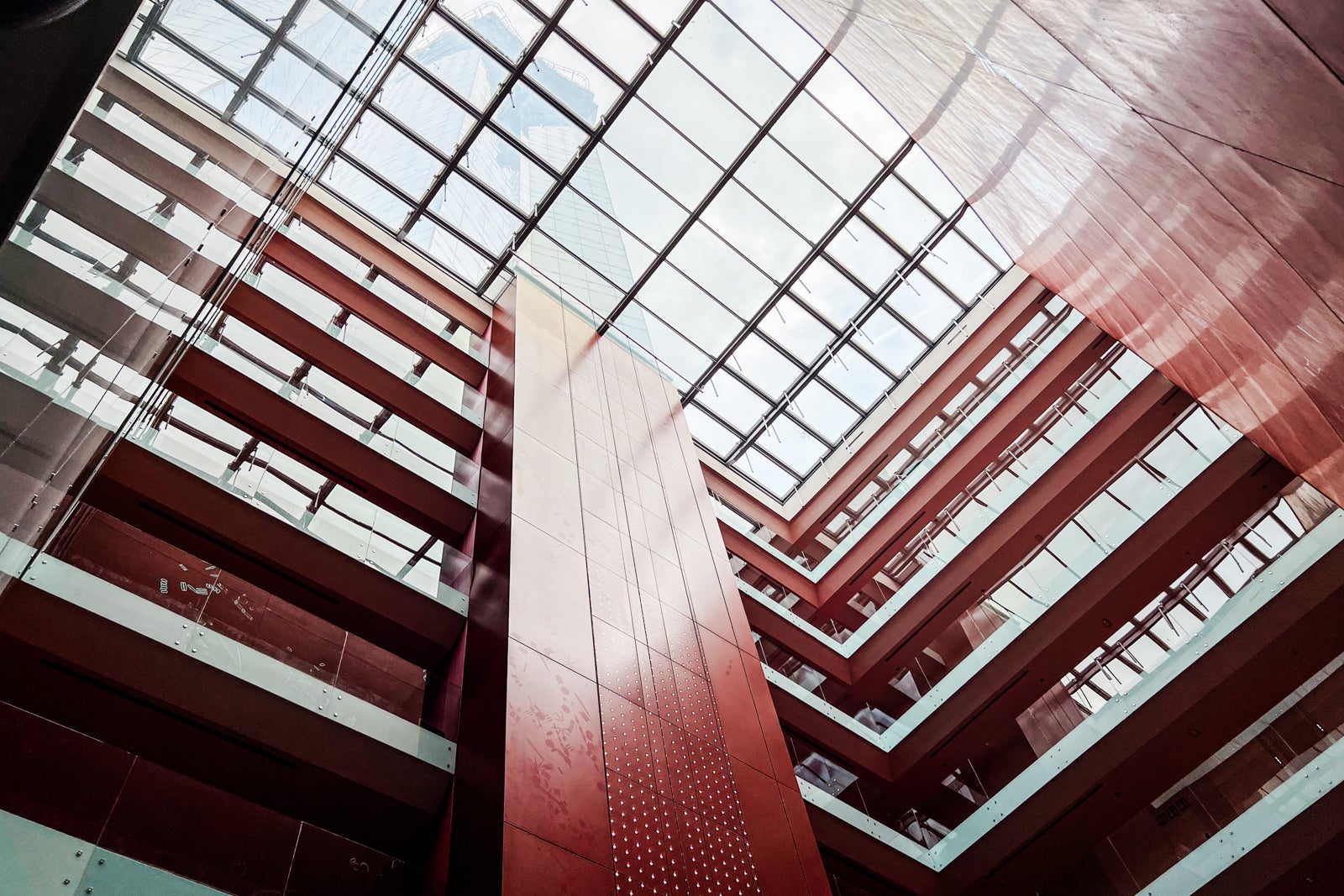 As I entered, I realized it was, first and foremost, a party hotel. From the shimmering silver tiled walls that lead your eye to the impressive glass ceiling, to the designated elevator that takes you straight to the rooftop nightclub, to the red walls and carpets lining the hallways, I felt like I had checked into a Miami-style "it" in the early aughts. Although the W Barcelona was built in 2009 and renovated in 2016, everything felt slightly dated, though not entirely worn.