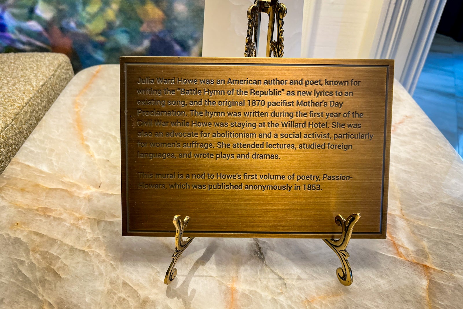 For our late-August visit, Bailey and I were assigned the Julia Ward Howe Suite in the southeast corner of the third floor. Measuring 1,100 square feet, the suite — named for the Civil War-era abolitionist and writer best known for writing the "Battle Hymn of the Republic" — features two entrances: one next to the elevators and another around the corner at the end of a discreet hall.